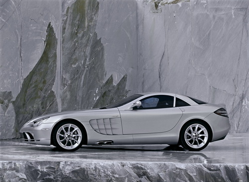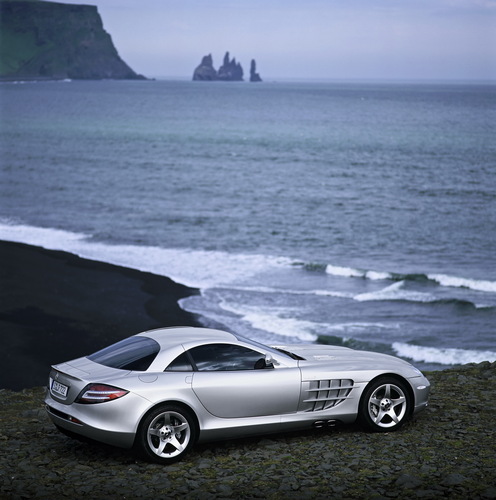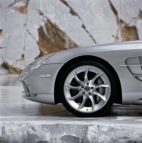 Автомобиль SLR невозможно спутать ни с чем. Тем не менее, такие его детали, как боковые «жабры», служащие воздуховыпускными отверстиями, длинный капот и двери напоминают автомобиль 300 SL с распахивающимися вверх дверями, который блистал в 50-е гг.