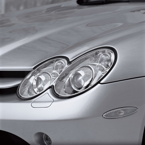 Именно восхитительное сочетание классических элементов с передовыми технологиями делает купе SLR таким неповторимым. Его вытянутый стреловидный «нос» снабжён целой системой воздухозаборных отверстий. Форма боковых «жабр», обращённых назад, также навеяна дизайном легендарного 300 SL с распахивающимися вверх дверями и очень точно передаёт горячий нрав купе SLR. В то же время его атлетичная задняя часть, по сравнению с 300 SL, заметно вытянута вверх. Почти вертикальная спойлер-накладка на крышке багажника со встроенным аэродинамическим тормозом AIRBRAKE и 6-канальный диффузор на днище кузова увеличивают прижимные силы, эффективно повышая устойчивость и динамику автомобиля.